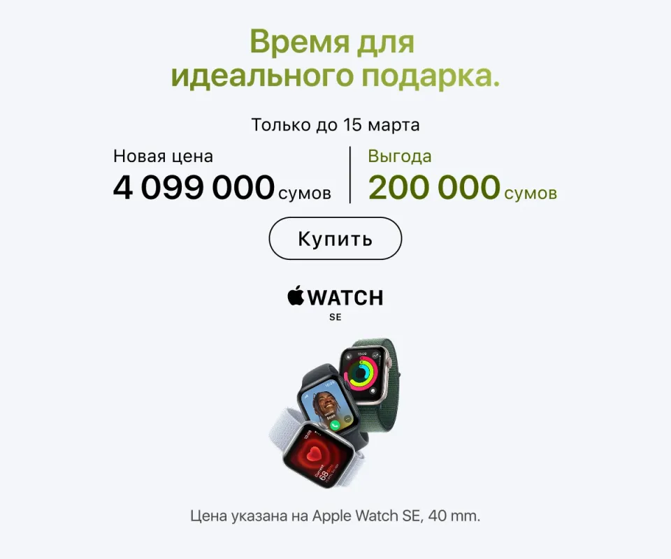 В iSpace вы можете купить новое устройство и подобрать аксессуары к нему онлайн и офлайн — это одинаково удобно и быстро. В первом случае бесплатная доставка действует по всему Узбекистану и обычно занимает до 72 ч. Кстати, вы можете заказать товар через интернет-магазин, а забрать его в физическом магазине (актуальный адрес указан на сайте). Оформляйте заказ удобным для вас способом, получайте бонусы и становитесь участником нашего сообщества.