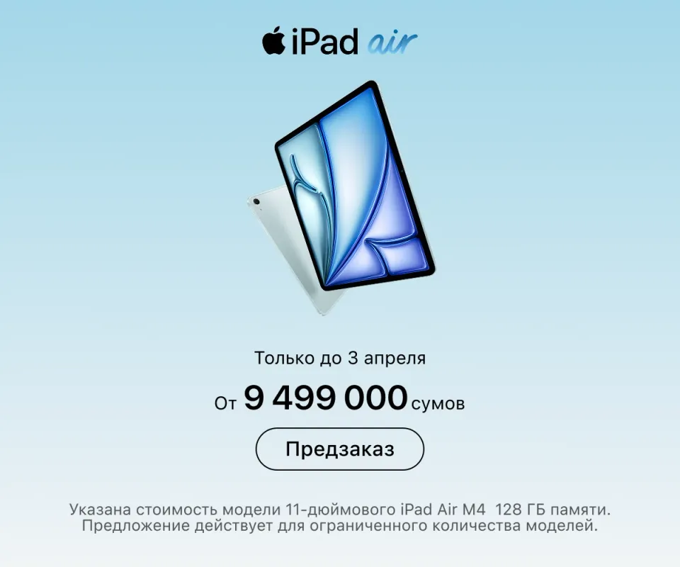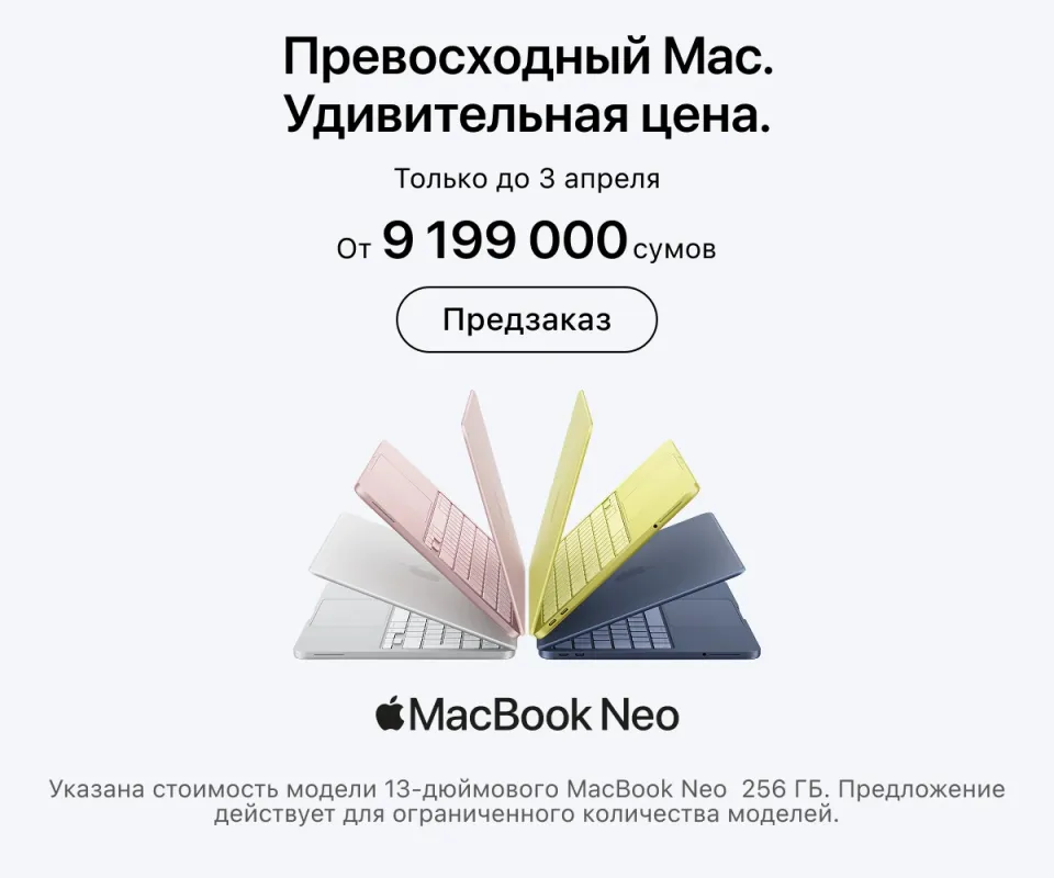 В Ташкенте открыт премиальный розничный магазин: тут можно найти всю оригинальную технику Apple с гарантией от производителя. Наша задача — превратить инновационные решения бренда в реальные и полезные инструменты для вашей повседневности. Для этого мы работаем онлайн и офлайн.
