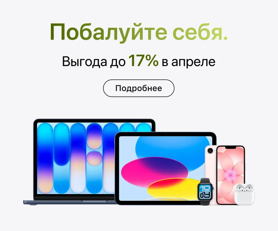 В iSpace представлена только официальная техника Apple — тут вы отыщите все актуальные гаджеты в разных категориях. Например, новенький iPhone последних серий, MacBook для повседневности или работы со сложной графикой. Если вы хотите создать настоящую профессиональную студию, можете собрать мощную станцию с помощью Mac Studio и Studio Display.