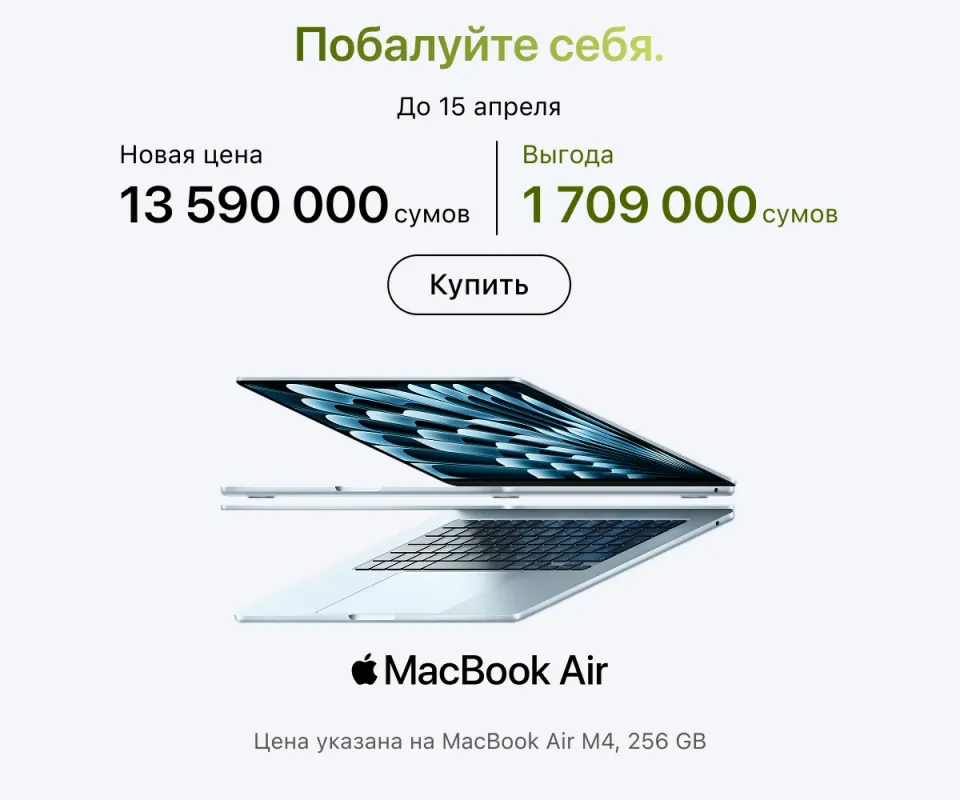 В Ташкенте открыт премиальный розничный магазин: тут можно найти всю оригинальную технику Apple с гарантией от производителя. Наша задача — превратить инновационные решения бренда в реальные и полезные инструменты для вашей повседневности. Для этого мы работаем онлайн и офлайн.