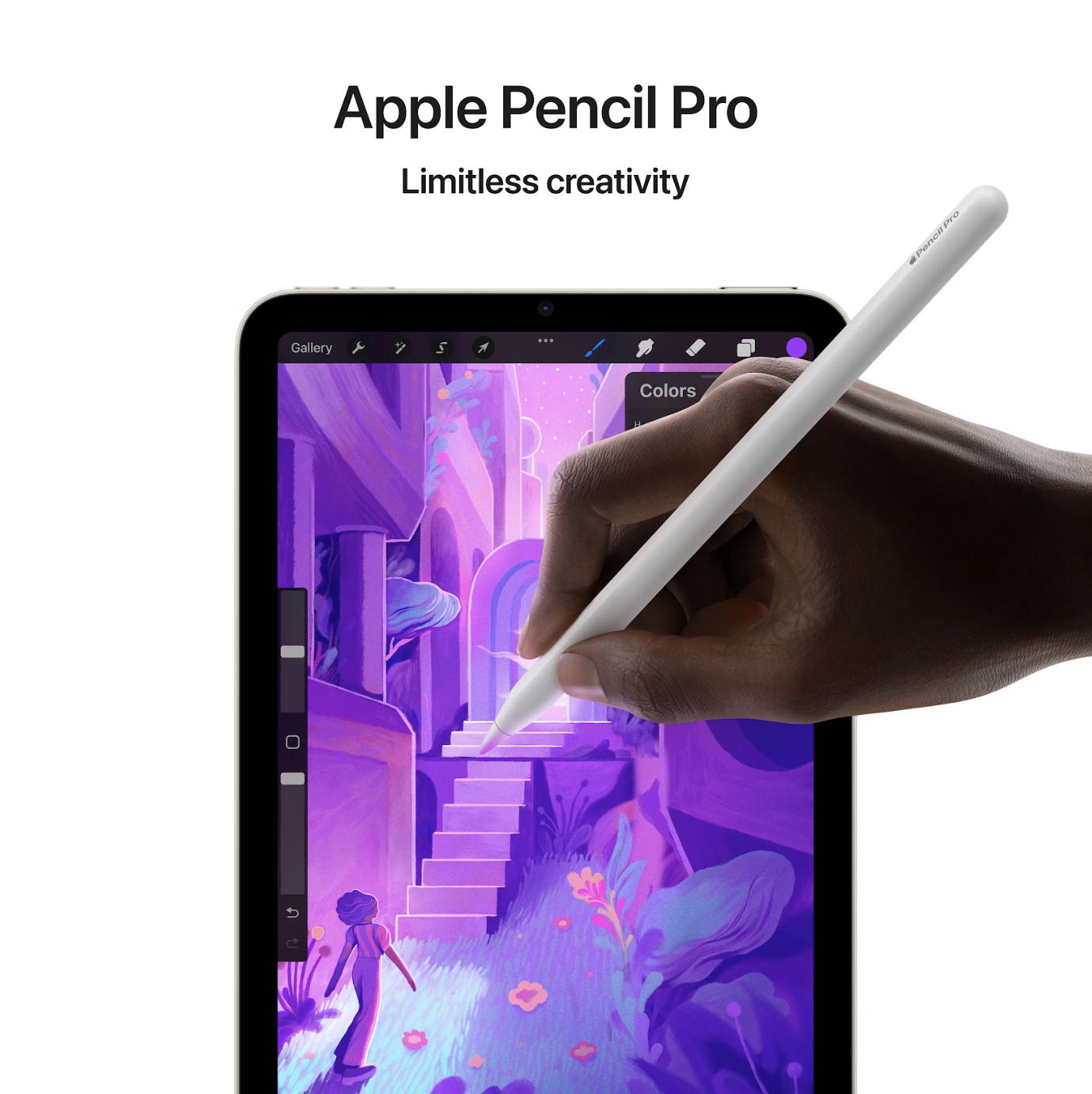 Apple Pencil Pro responds to tactile impulses — it recognizes compression, and this expands the possibilities of its use. For example, to create a palette of tools, you just need to press on the gadget. With it, the tablet turns into a full-fledged sketchbook for the artist.