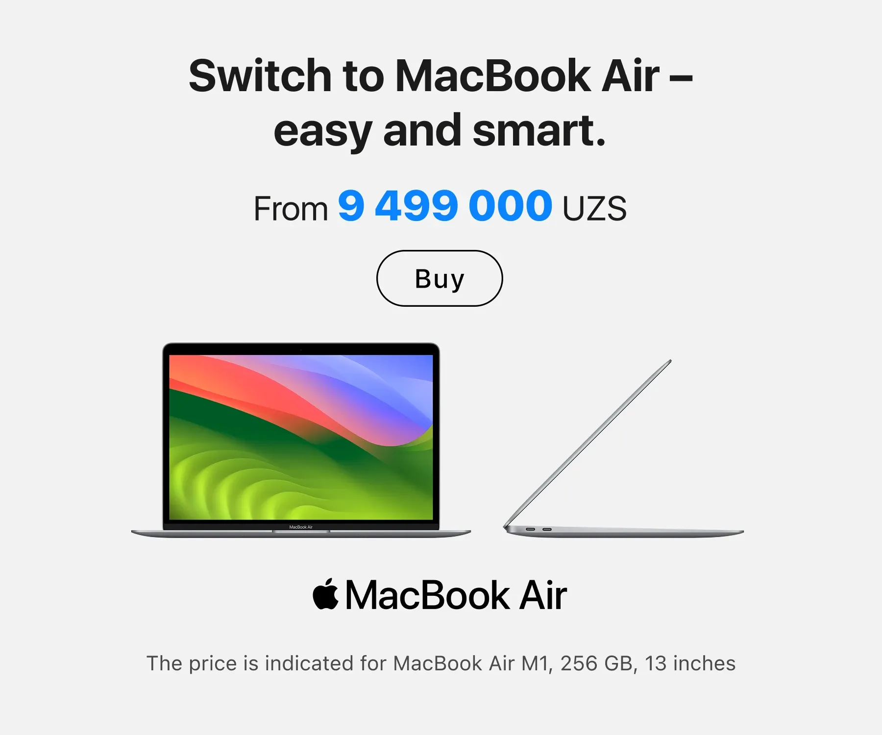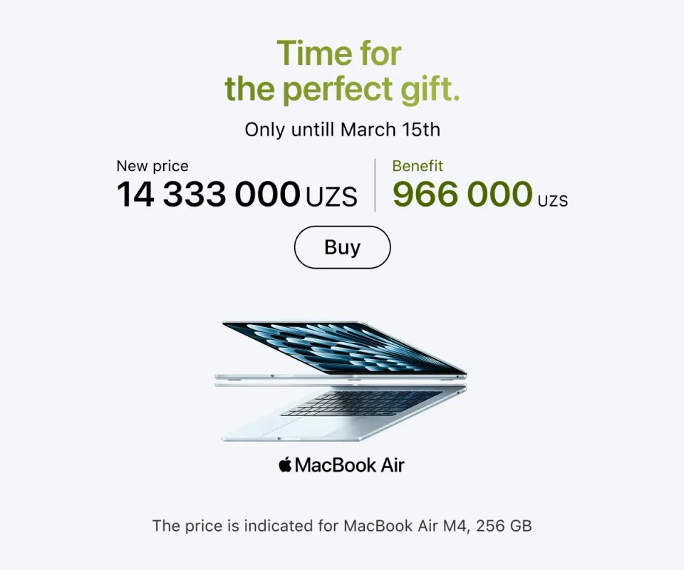 A luxury retail store has been opened in Tashkent, where you can find all original Apple products with a brand warranty from the original company. Our mission is to turn the brand's innovative solutions into real and useful tools for your everyday life. To do this, we work online and offline.