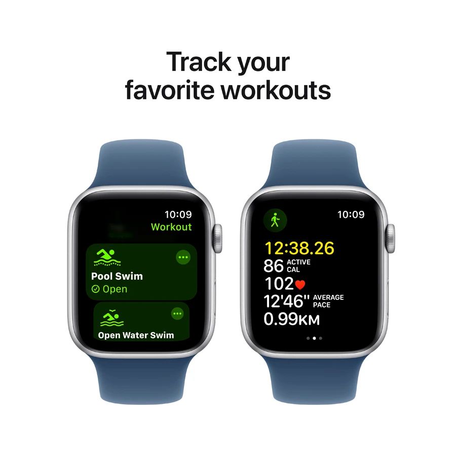Apple Watch SE GPS Gen.2 (2024), Denim Sport Band, M/L, 40mm, Silver