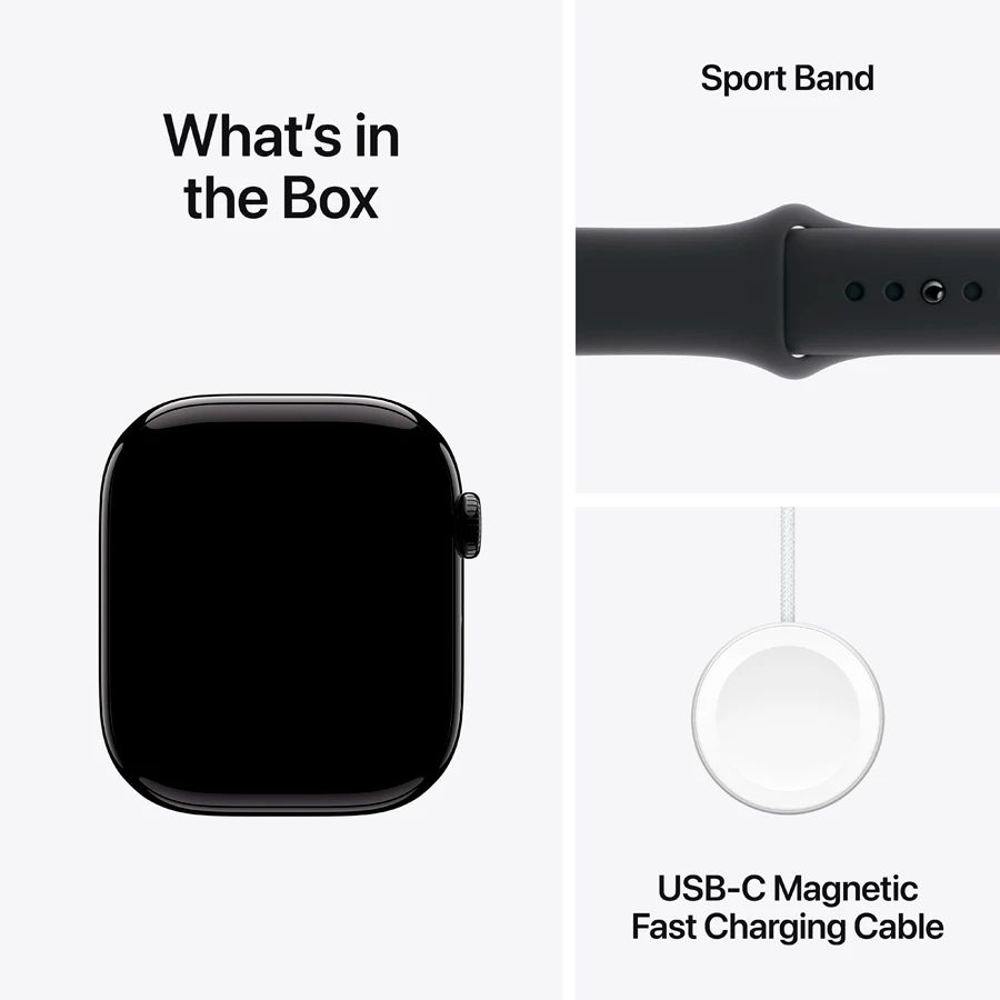 Apple Watch Series 10 GPS, Black Sport Band, M/L, 42mm, Jet Black