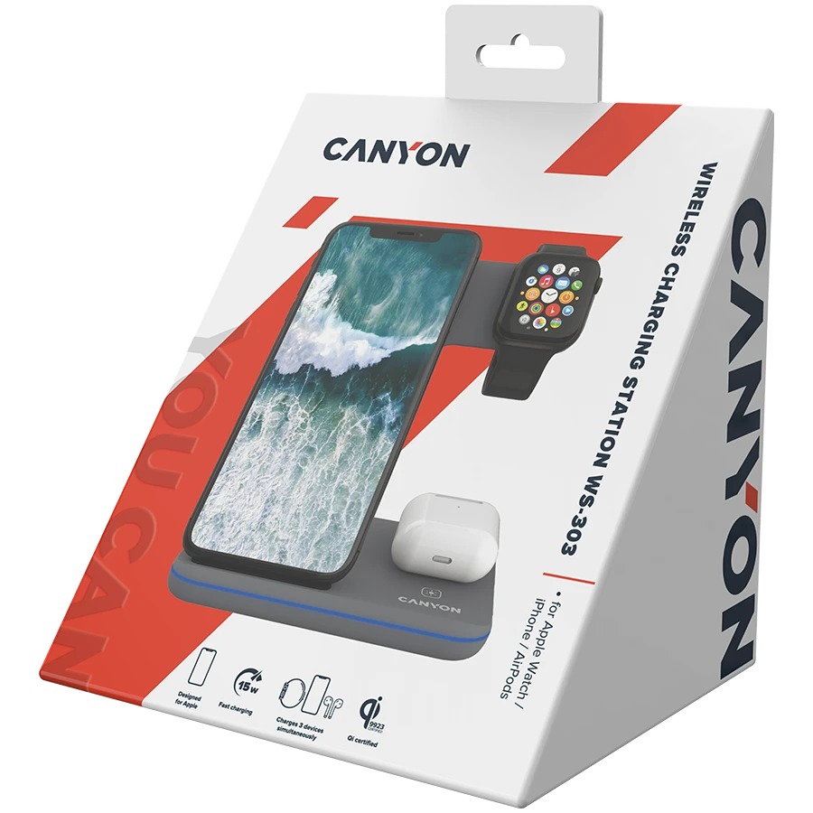 CANYON WS-303 Wireless Charger, 15 W, Dark Gray