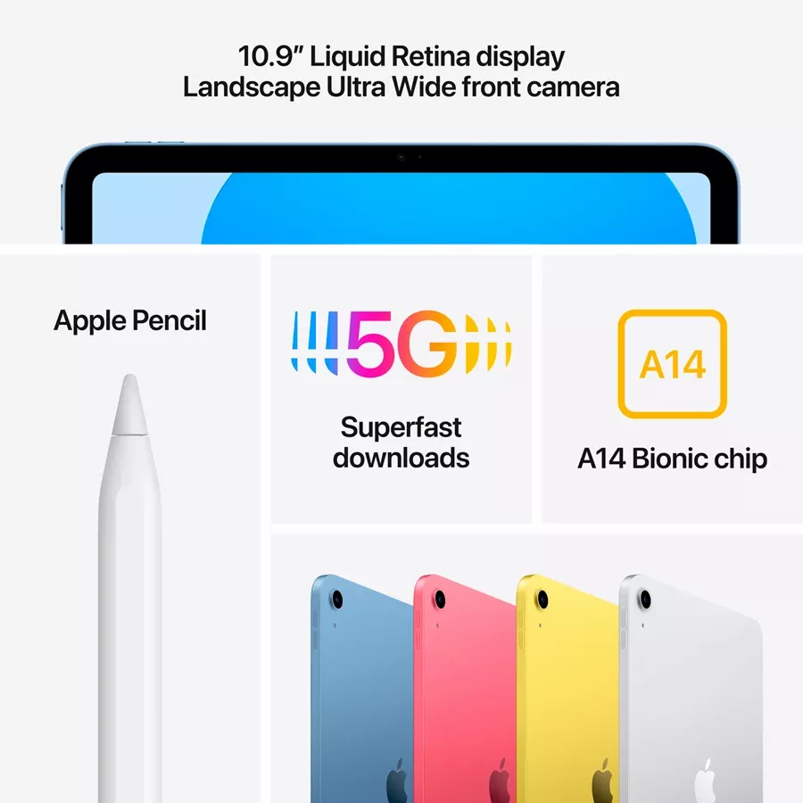 Colorfully reimagined and more versatile than ever. With an all-screen design,10.9-inch Liquid Retina display, and four gorgeous colors. iPad delivers a powerful way to create, stay connected, and get things done, all for an even more affordable price.