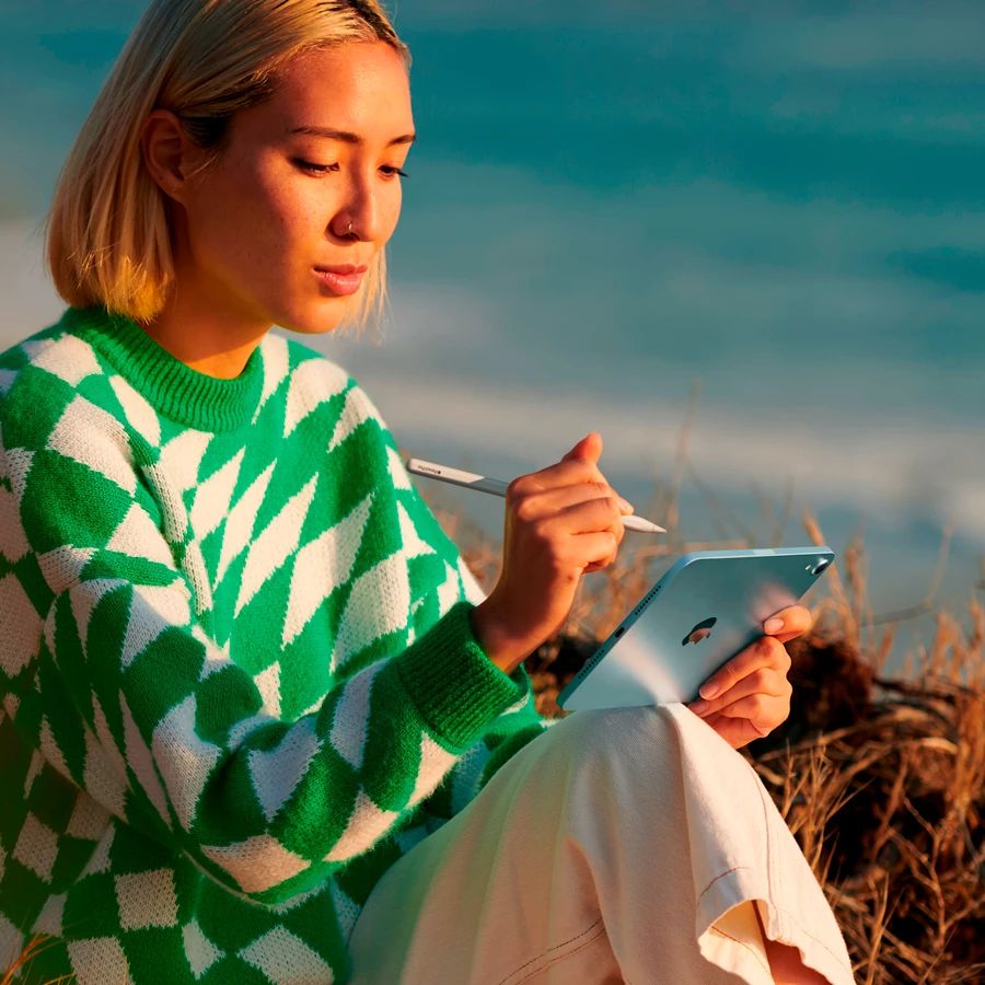 iPad mini. Featuring an all-screen design with an 8.3-inch Liquid Retina display. Powerful A15 Bionic chip with Neural Engine. A 12MP Ultra Wide front camera with Center Stage. USB-C connectivity. 5G capability. Take notes, mark up documents, or capture your biggest ideas with Apple Pencil (2nd generation) that attaches magnetically and charges wirelessly.