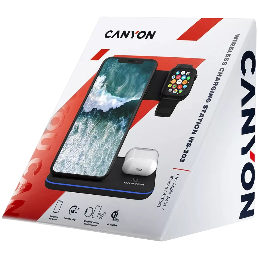 CANYON WS-303 Беспроводное зарядное устройство, 15 Вт, Чёрный