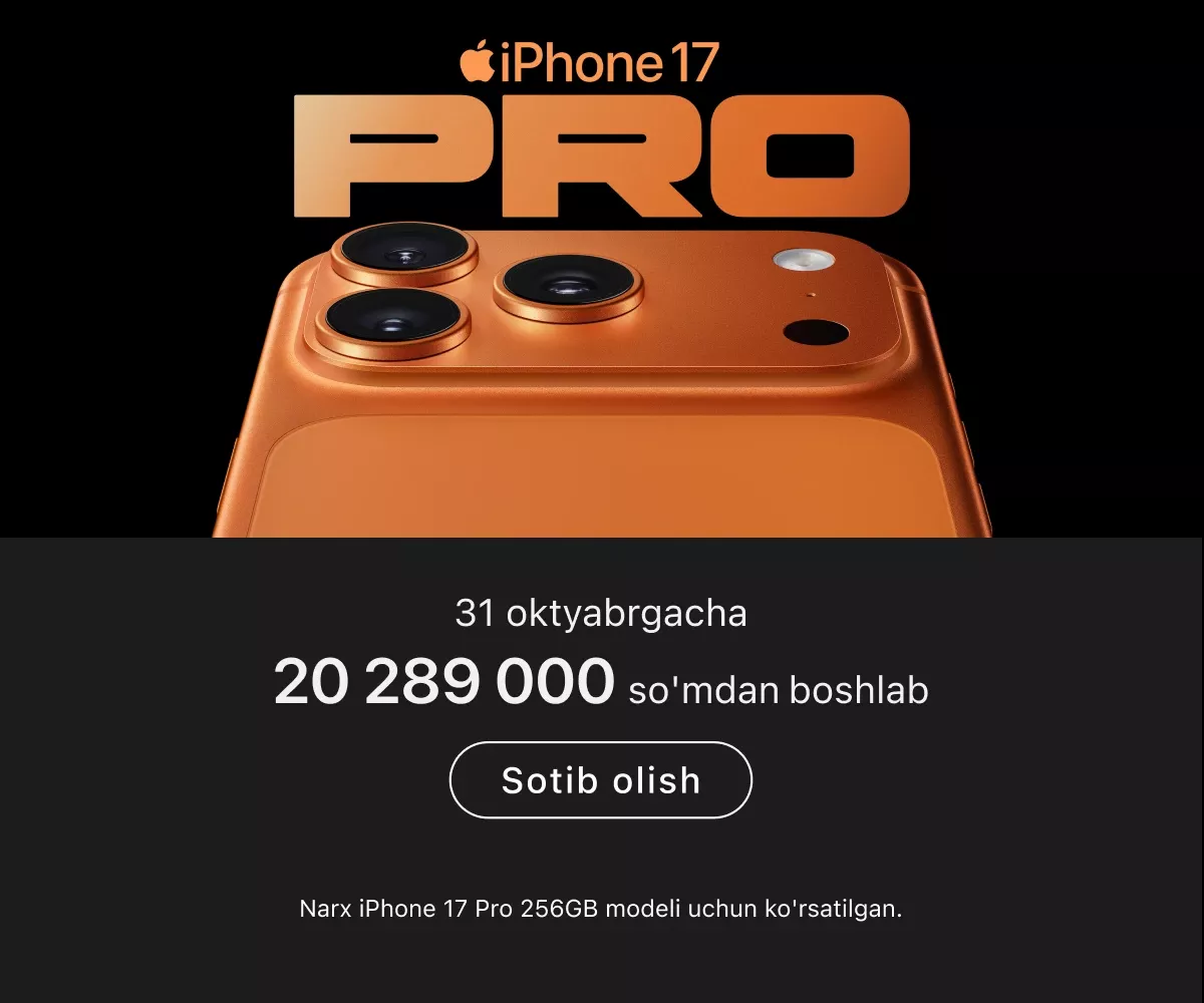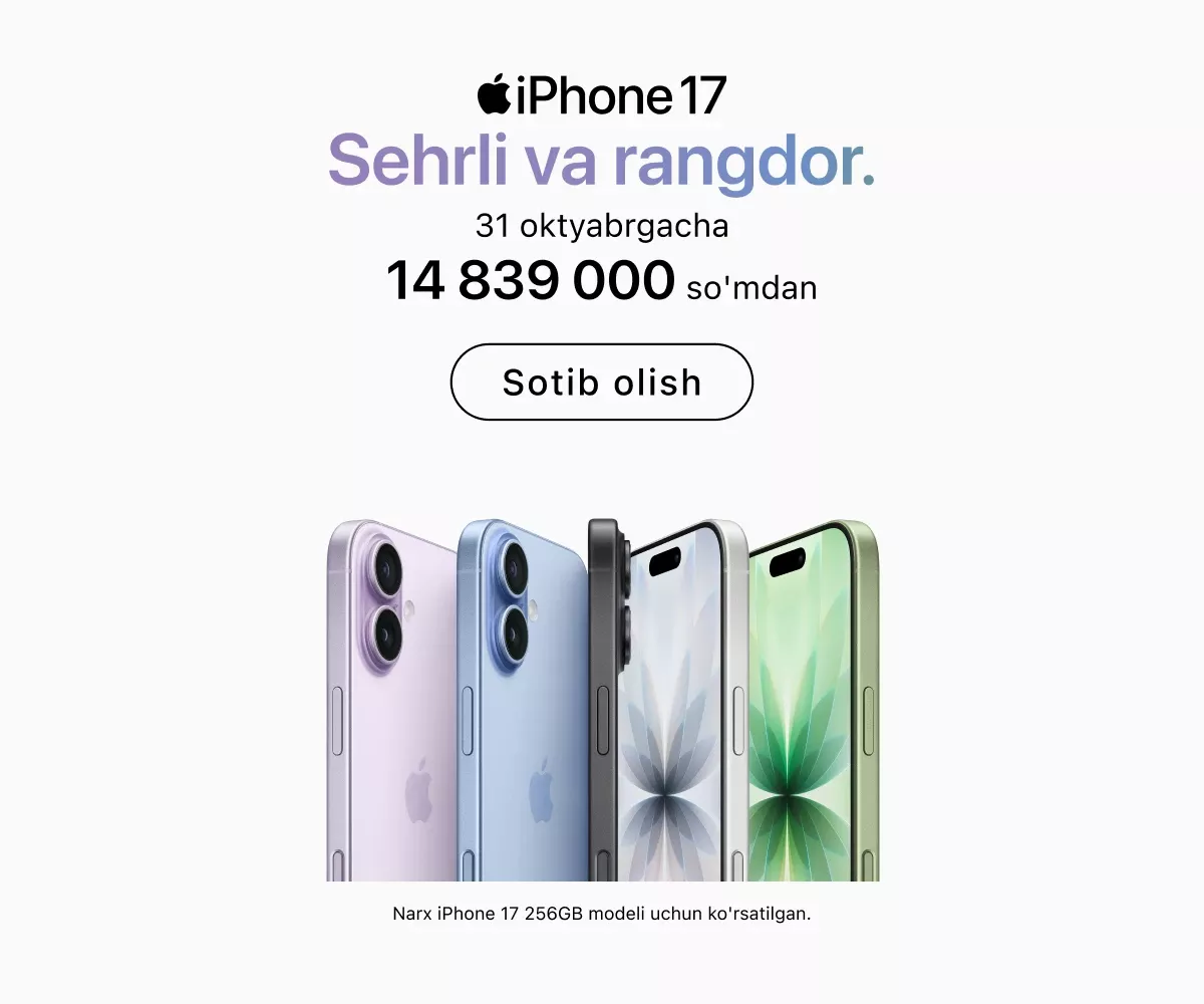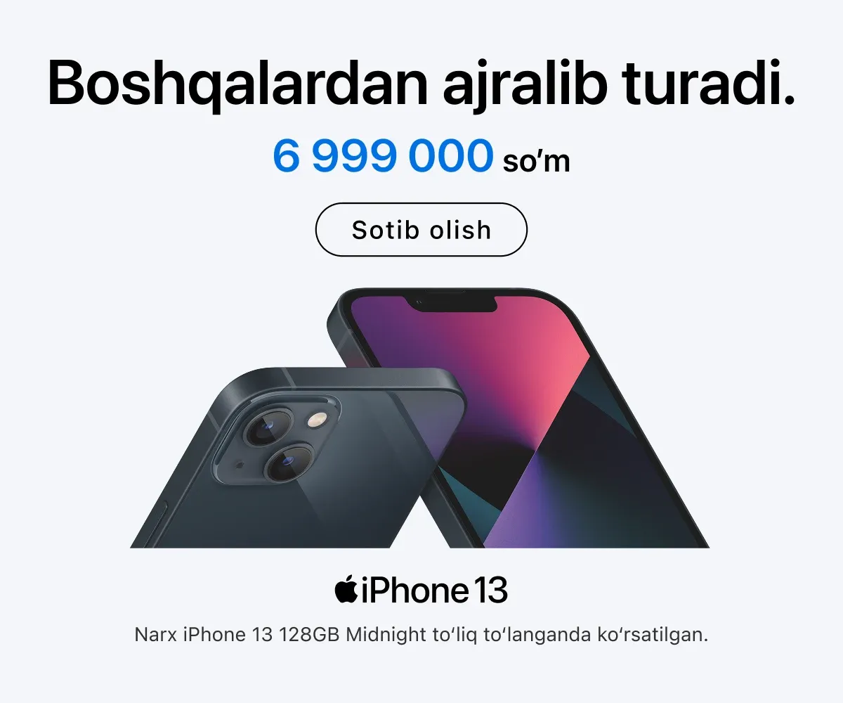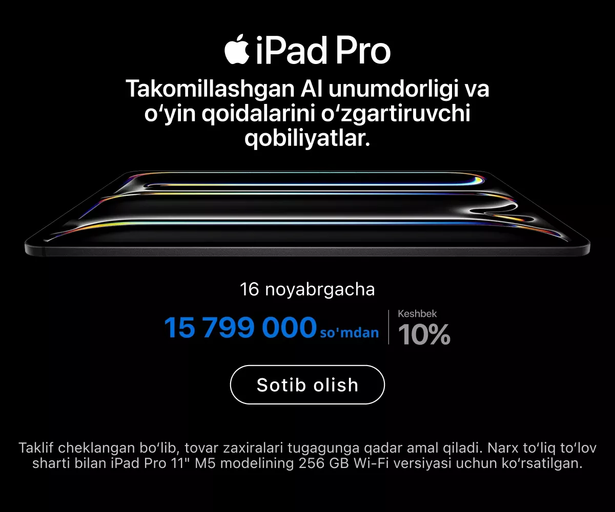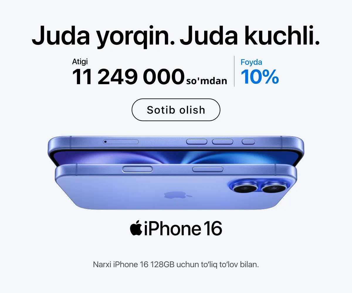 iSpace’da faqat rasmiy Apple qurilmalari taqdim etiladi – bu yerda siz turli toifadagi eng so‘nggi qurilmalarni topasiz. Masalan, oxirgi seriyadagi yangi iPhone, kundalik foydalanish yoki murakkab grafikalar ustida ishlash uchun MacBook. Agar haqiqiy professional studiya yaratmoqchi bo‘lsangiz, Mac Studio va Studio Display yordamida kuchli ish stansiyasini yig‘ishingiz mumkin.