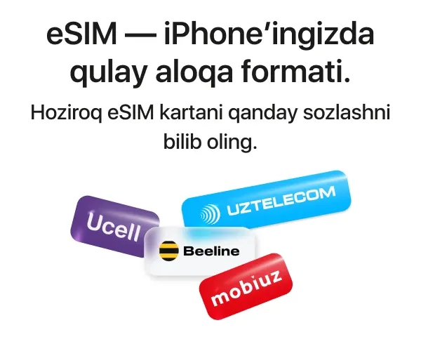Mobil aloqa operatori do‘koniga tashrif buyuring. Shaxsni tasdiqlovchi hujjat tekshirilganidan keyin xodim iPhone qurilmangizda eSIM kartani tezkor sozlaydi va faollashtiradi.