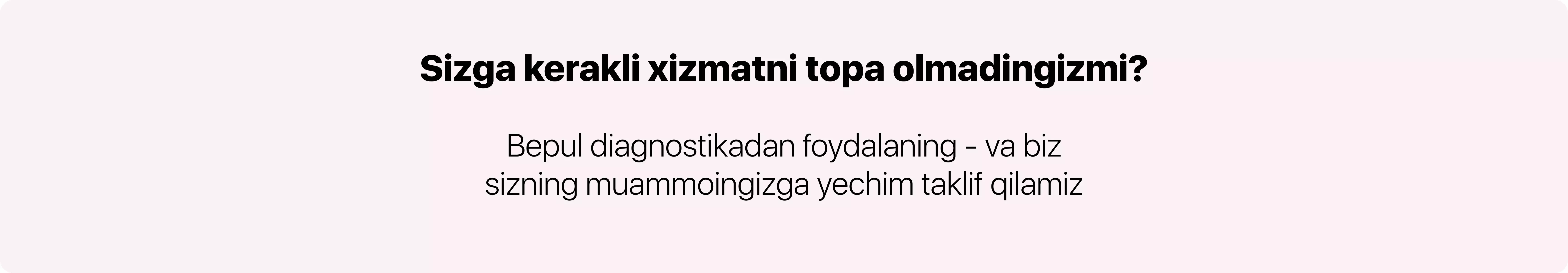 Umidsiz vaziyatlar bo‘lmaydi va zabt etib bo‘lmaydigan cho‘qqilar yo‘q. Qurilmangiz bilan bog‘liq muammoni qanday hal qilishni yoki istalgan savolingizga javob topishni yaxshi bilamiz, shu sababli ruxsat etilgan servis markazimizning eng yaxshi sharoitlarini taqdim etamiz. Bu yerda nafaqat mahsulot xarid qilishingiz, balki narsangizning uzoq muddat xizmat qilishini ta’minlash uchun kerakli barcha xizmatlarni olishingiz mumkin. Sizni xushmuomala va bilimdon xodimlar, sifatli xizmat ko‘rsatish, dastlabki sozlamalarda yordam, barcha qiziqtirgan savollarga javob va boshqa ko‘plab qulayliklar kutmoqda.