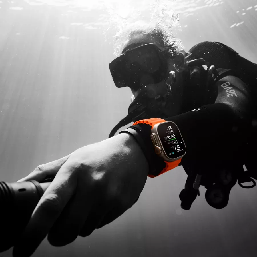 - JUDA MUSTAHKAM, HAYRATLANARLI QUDRATLI. Korroziyaga chidamli 49 mm titan korpusi. Safir shishali displey qoplamasi. Katta Digital Crown va sozlanadigan Action tugmasi funksiyalarni tezda boshqarish imkonini beradi. MIL-STD 810H standarti asosida sinovdan o‘tgan. 100 metrgacha suvga chidamli.