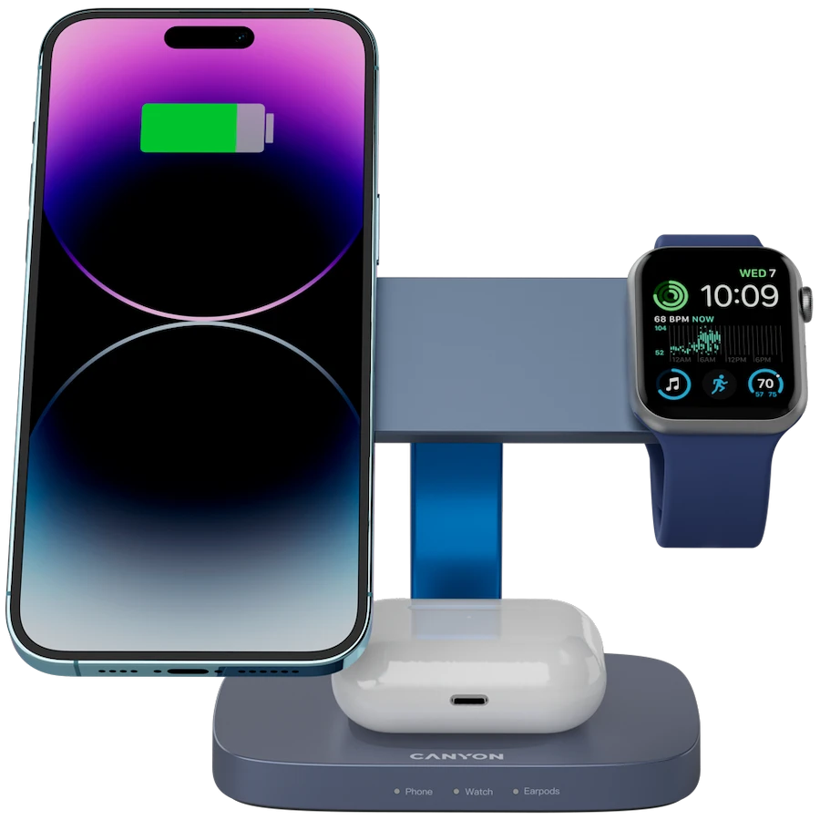 CANYON WCS-310 Wireless Charger, 15 vatt, Dark Grey/Blue