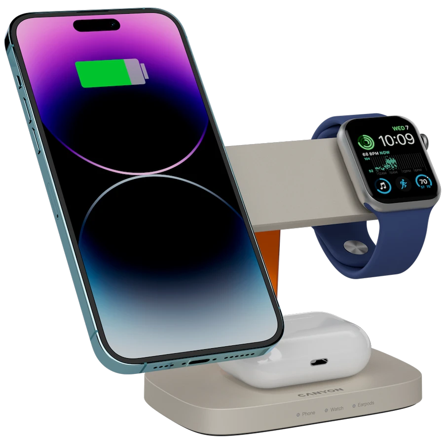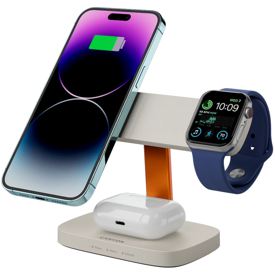 CANYON WCS-310 Wireless Charger, 15 vatt, Light Grey/Orange