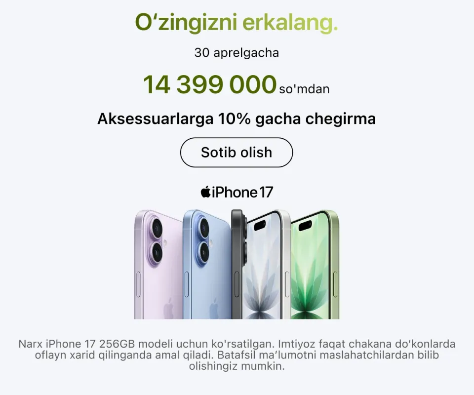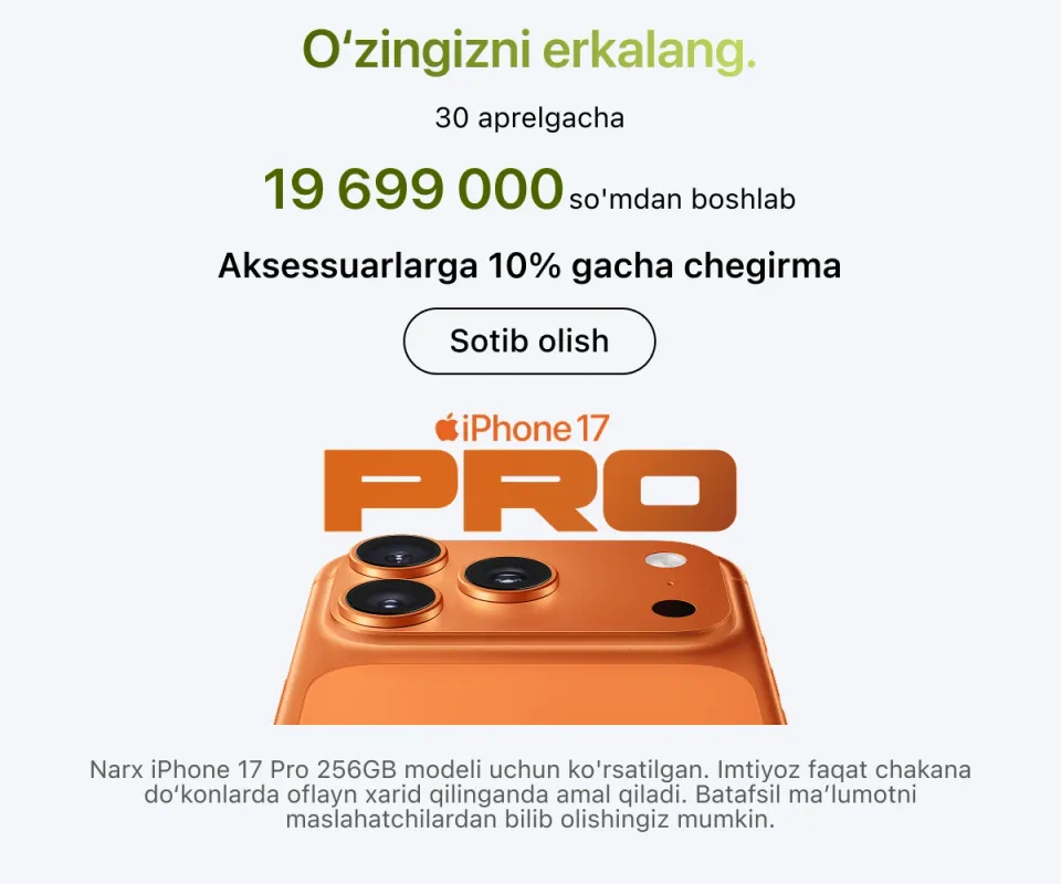 iPhone 17 Pro Max atigi 21 399 000 so'mdan Sotib olish