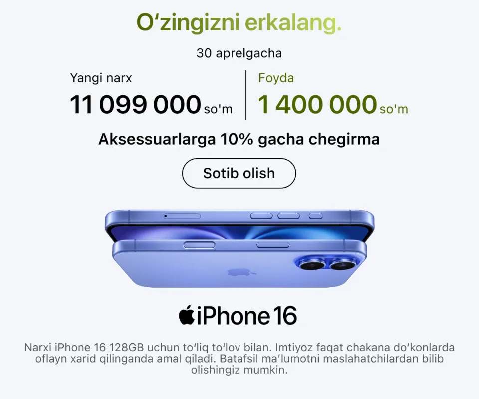 Apple’ning istalgan texnikasini 24 oylik muddatli to‘lovga oling!
