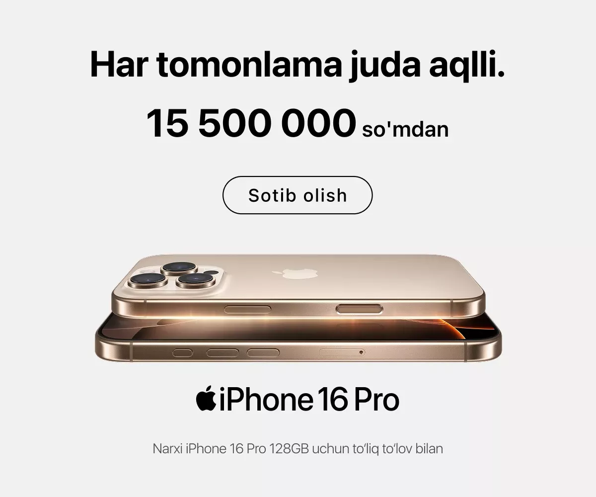 iSpace’da faqat rasmiy Apple qurilmalari taqdim etiladi – bu yerda siz turli toifadagi eng so‘nggi qurilmalarni topasiz. Masalan, oxirgi seriyadagi yangi iPhone, kundalik foydalanish yoki murakkab grafikalar ustida ishlash uchun MacBook. Agar haqiqiy professional studiya yaratmoqchi bo‘lsangiz, Mac Studio va Studio Display yordamida kuchli ish stansiyasini yig‘ishingiz mumkin.